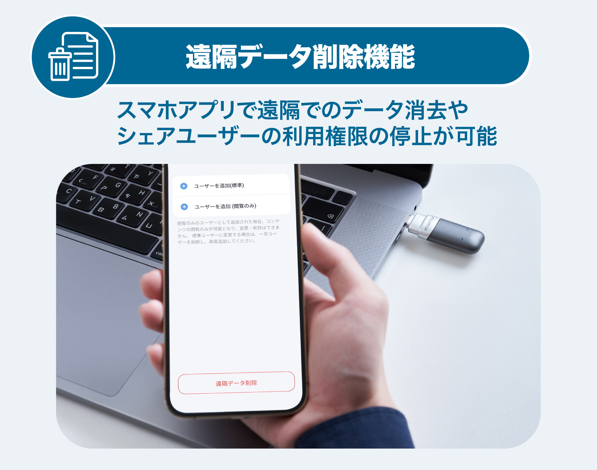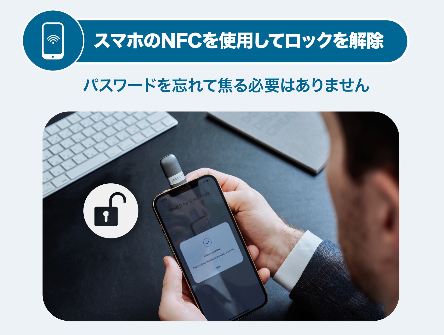 【世界初のNFCロック解除、アプリでユーザー管理、遠隔データ削除機能搭載で情報漏洩を徹底的に防止!】