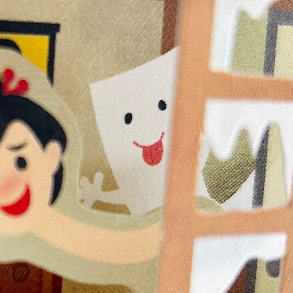 可愛らしい看板犬がお出迎えしてくれる昔懐かしい駄菓子屋を表現。紙風船や色とりどりの駄菓子、昼寝をしている猫、風車とうちわなどディテールにも注目です。