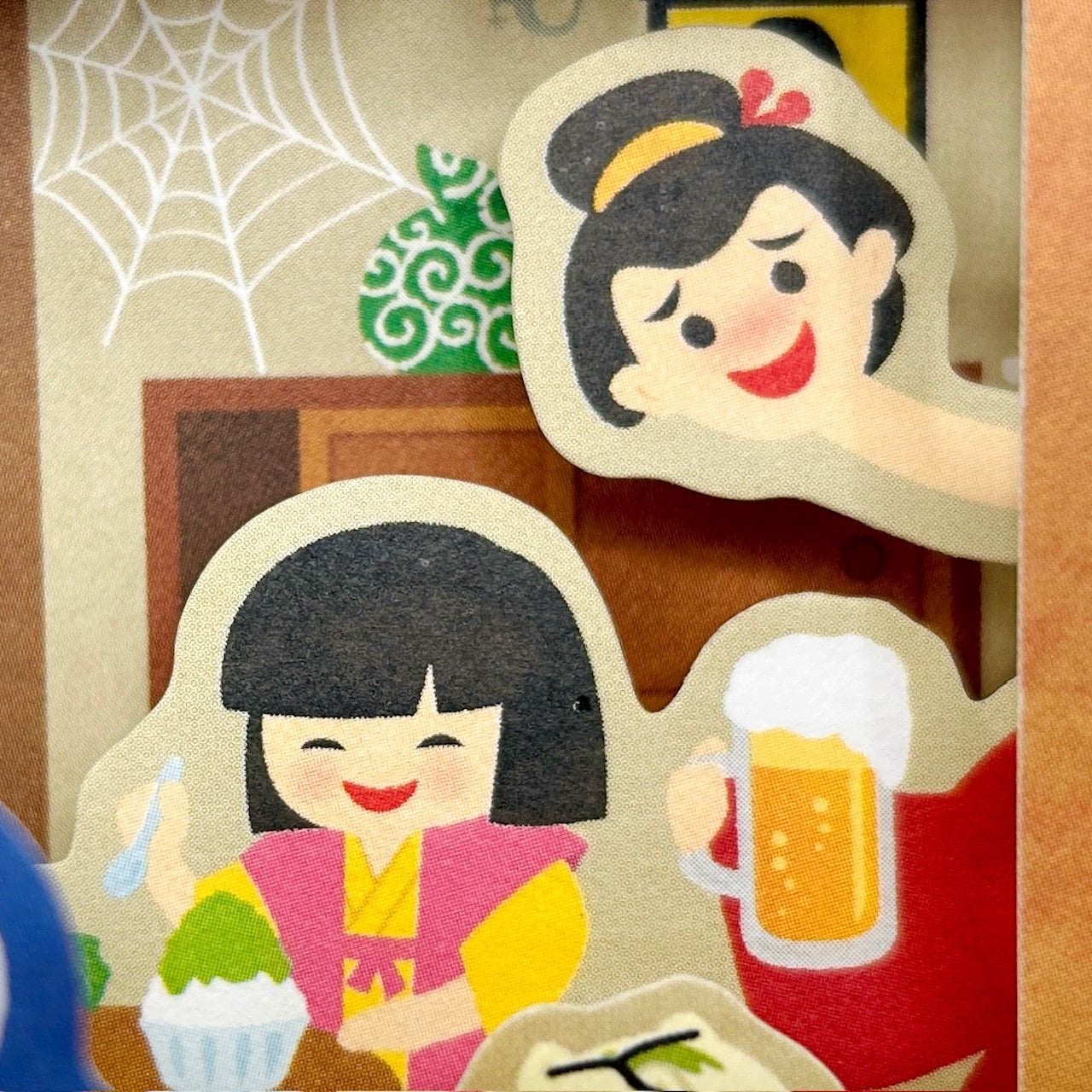 ジオラマ風に楽しめる「駄菓子屋」「妖怪屋敷」の風景型立体サマーカード