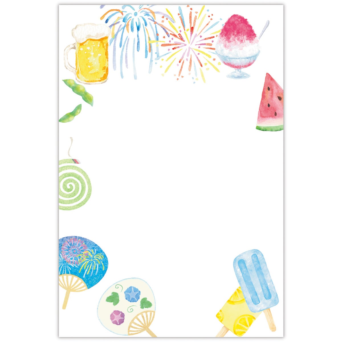 越前和紙の優しい風合いを生かしたシリーズ。縦書きにも横書きにも書ける人気の罫線なしタイプは、風景印やスタンプの台紙として夏の思い出を残すのにもおすすめです。涼しげな「朝顔」、心躍る夏を想起させる「夏のたのしみ」、カラフルなお面やお菓子が目を引く「縁日」の3種類が加わりました。