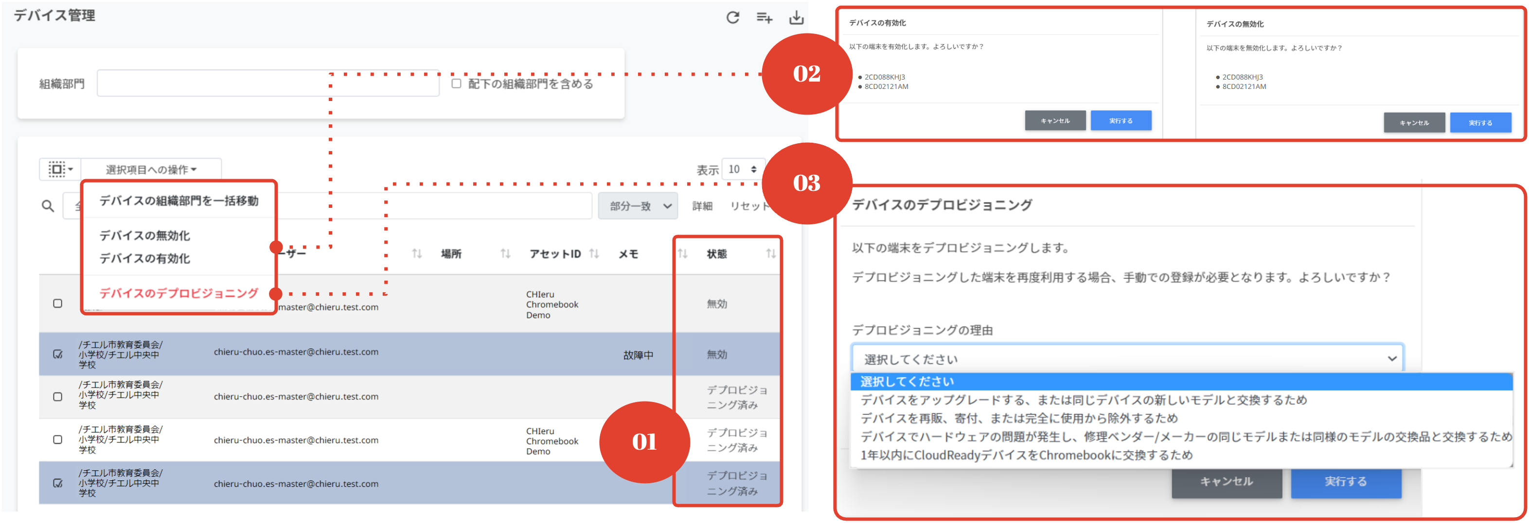 デプロビジョニング(管理対象から外す)機能で、デバイスの修理時や長期で使用しない期間などの管理・設定がスムーズになりました。
