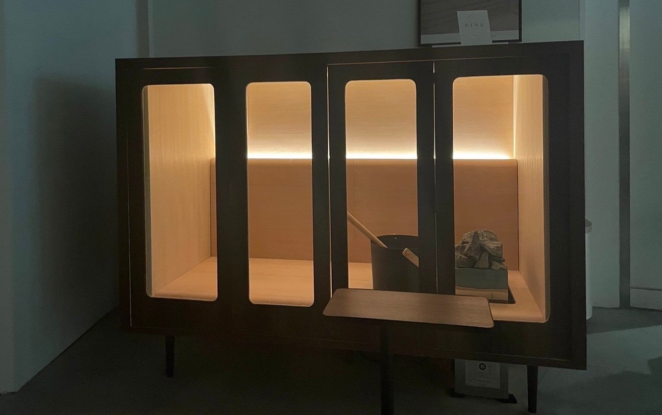 本展示では木目調で暖かみのある屋内用サウナBASICラインの「ウッドモデル」、インダストリアル調の「モルタルモデル」に加え、サウナになる家具「EINE(アイネ)」も本イベントで初お披露目。ライフスタイルに溶け込むサウナ空間をぜひご体感ください。