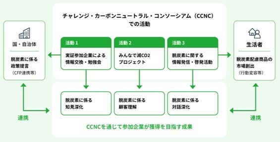 CCNCでは、生活者が脱炭素の取り組みに触れて認知を広げ、学びを通して楽しみ、興味をもって自分ゴト化する機会を用意し、生活者とともに脱炭素社会の実現に挑戦します。今後、①実証参加企業同士の情報交換・勉強会、②みんなで減CO2(ゲンコツ)プロジェクト、③脱炭素に関する情報発信・啓発活動、の3つの活動を展開します。