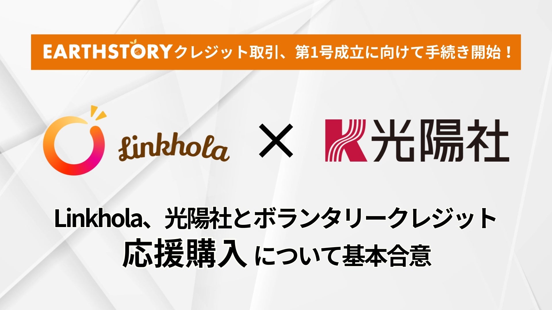 株式会社Linkhola(本社:東京都港区、代表取締役:野村恭子、以下「Linkhola」)は、ボランタリークレジットの創出・取引を支援するプラットフォーム「EARTHSTORY」を提供するカーボンインフラ企業です。この度、株式会社光陽社(本社:東京都文京区、代表取締役:犬養 岬太、以下「光陽社」)と、ボランタリークレジット応援購入にかかる協業につき基本合意いたしましたのでお知らせします。