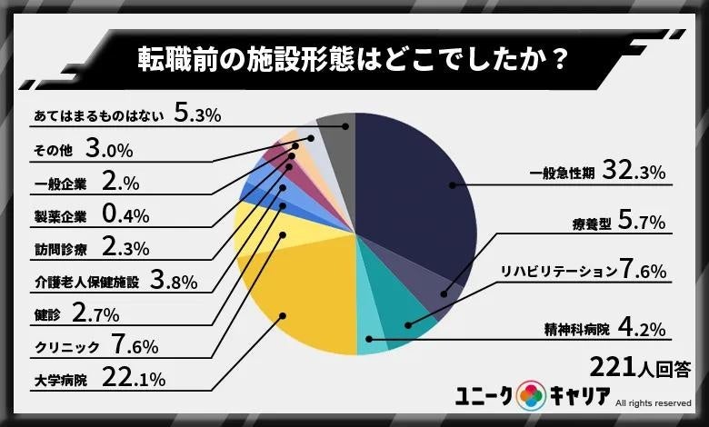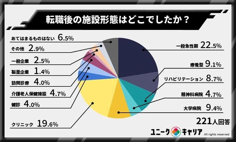 転職後の施設形態では「一般急性期」が最も多い結果となっている。