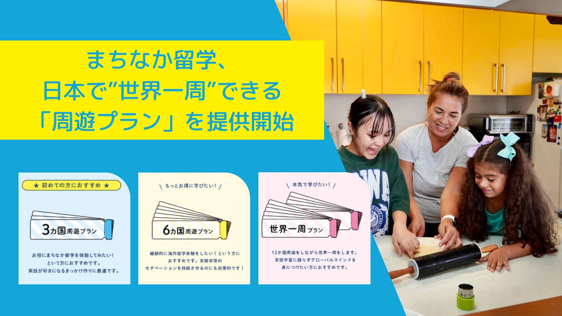 新プランでは「3カ国周遊プラン」「6カ国周遊プラン」「世界一周プラン」を展開。12カ国を周遊できる「世界一周プラン」は1カ国単位のまちなか留学プランに比べ、最大25%お得に国内留学が体験できます。