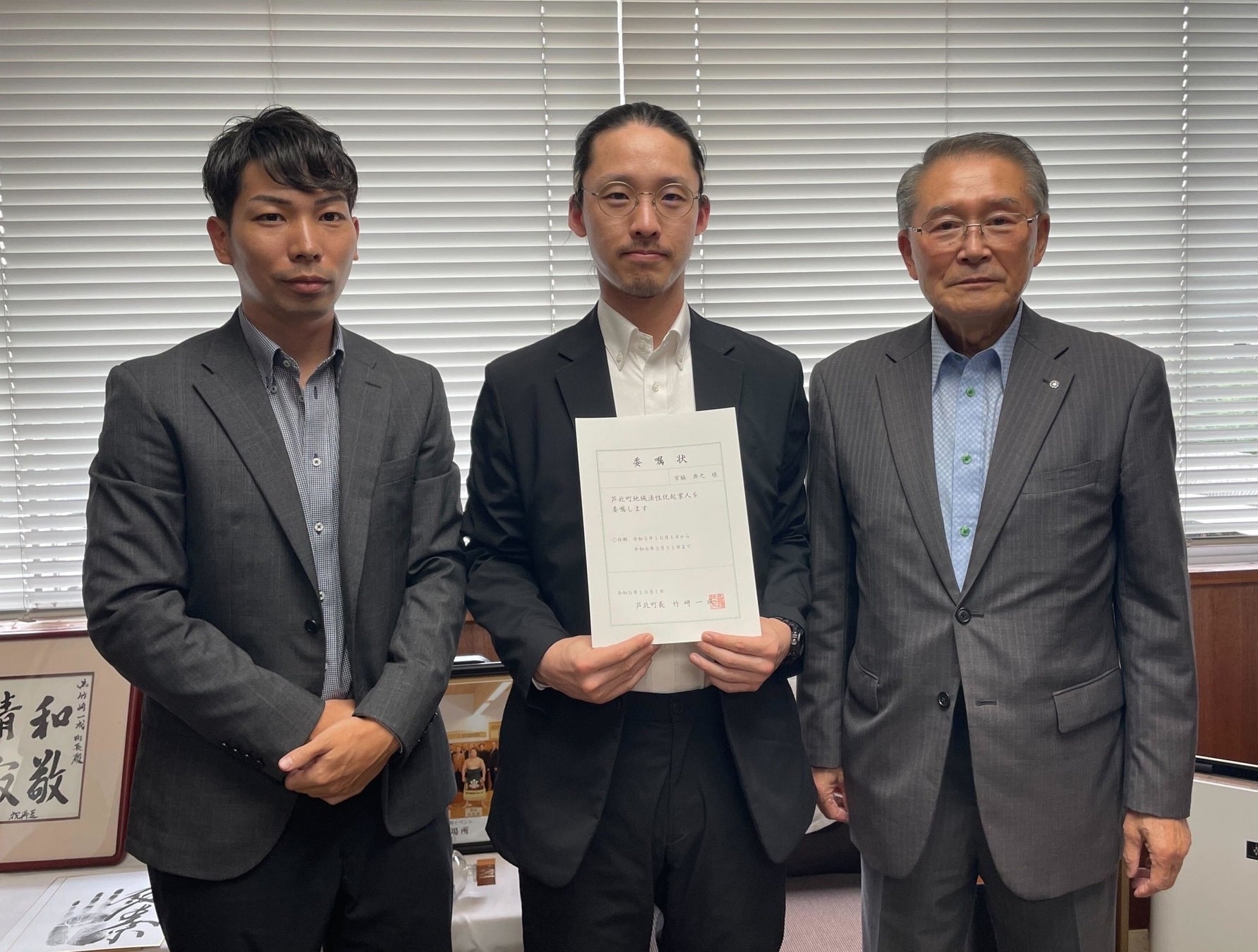 4日に委嘱状交付式が執り行われ、芦北町の竹﨑町長からLiNew社員である宮脇典之へ委嘱状が交付されました。