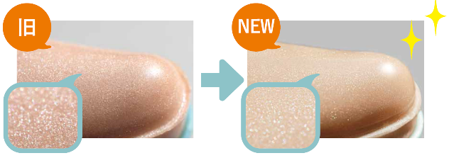 従来品と比べて、パールをさらに細かく、日常でもより使いやすくしています。使うが楽しくなるような、新しいボディメイクUVです。