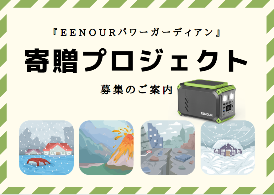 EENOURパワープロダクトを寄贈する「EENOURパワーガーディアン」プロジェクトを実施しています。寄贈する予定の製品:ポータブル電源、ソーラーパネル
