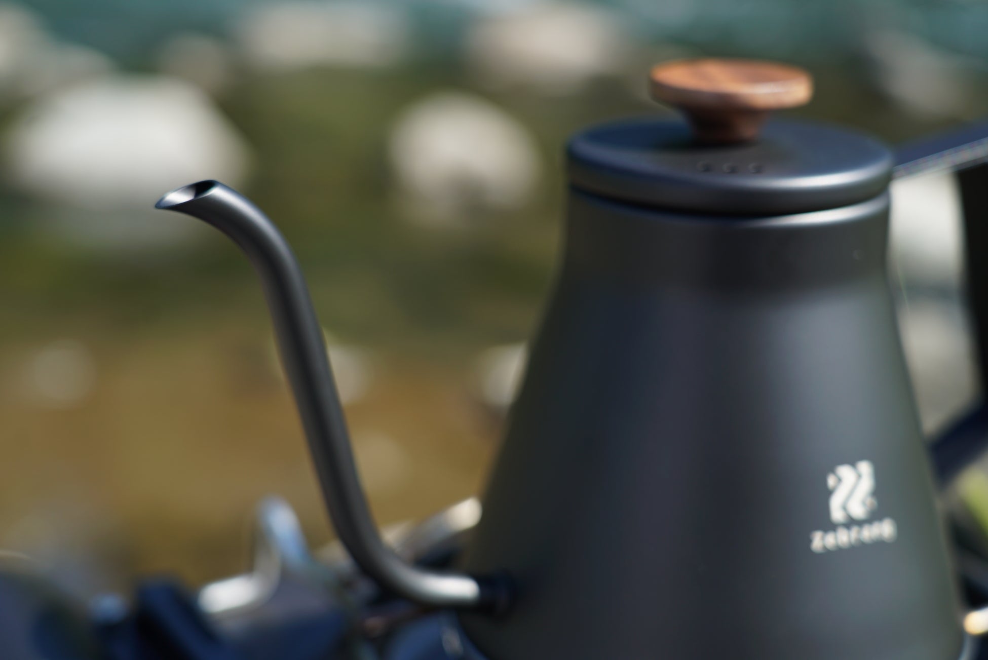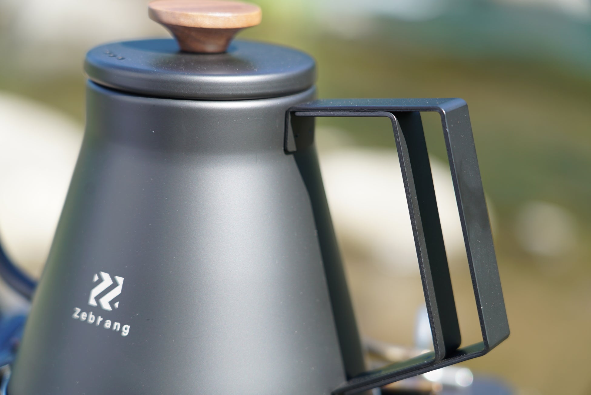 ステンレス製のケトルをゼブランのブランドカラーのブラックで統一。また、つまみ部分には天然木を使用。無機質なマットブラックと天然木のコントラストはどんなギアともマッチします。
