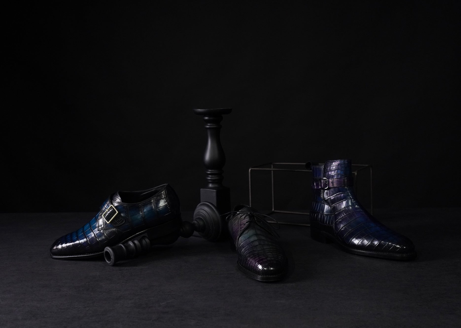 【yuhaku(ユハク)】高級素材クロコダイル革を使用し職人手染めを施した「レザースニーカー」の受注製作開始