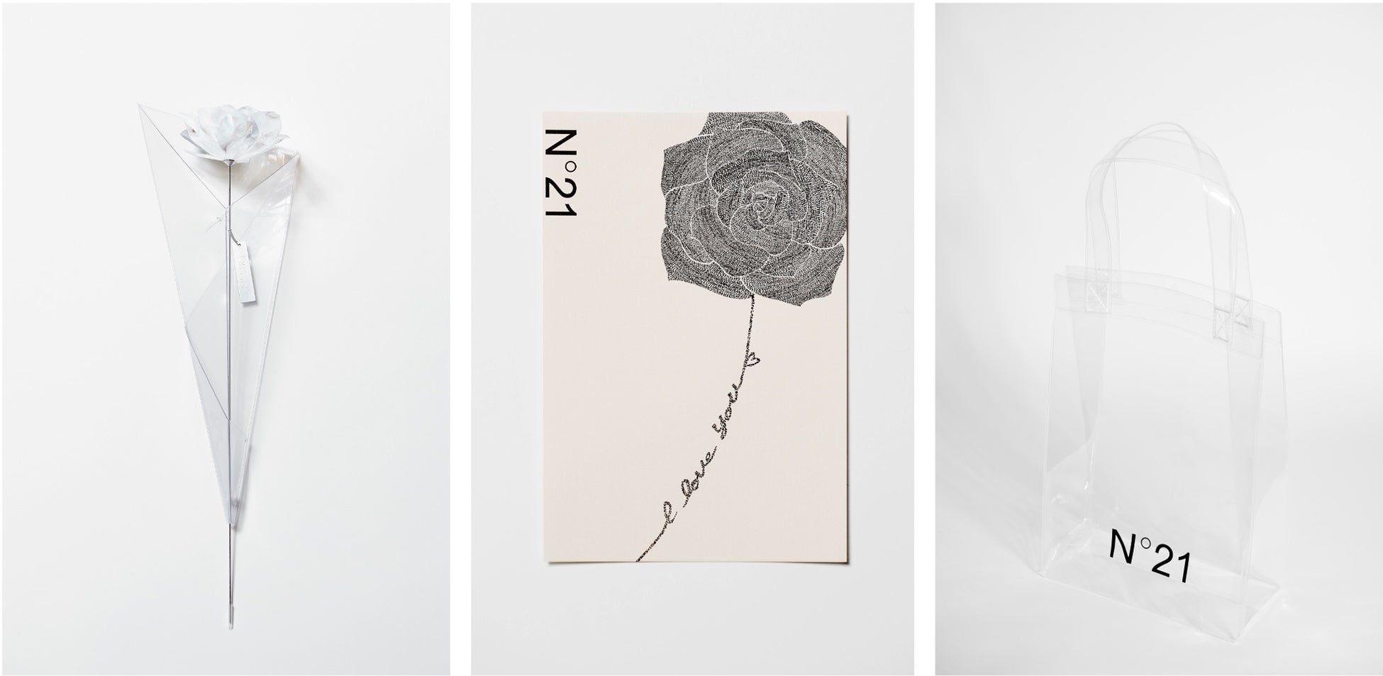 またイラストレーターの田辺ヒロシによる描き下ろしイラストのポストカードもご用意いたしました。感謝の気持ちを伝えるメッセージカードや、お部屋に飾ってインテリアとしてもお楽しみいただけます。付属するトートバッグは、透明素材にN21のロゴ入りで、繰り返し使用いただけるデザイン。海やプール、アウトドアなど夏のお出かけにぴったりです。
