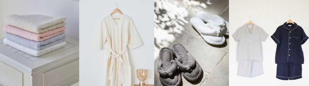 取扱い商品:パジャマ、リラクシングウェア、バスローブ、タオル、マット、スリッパなど