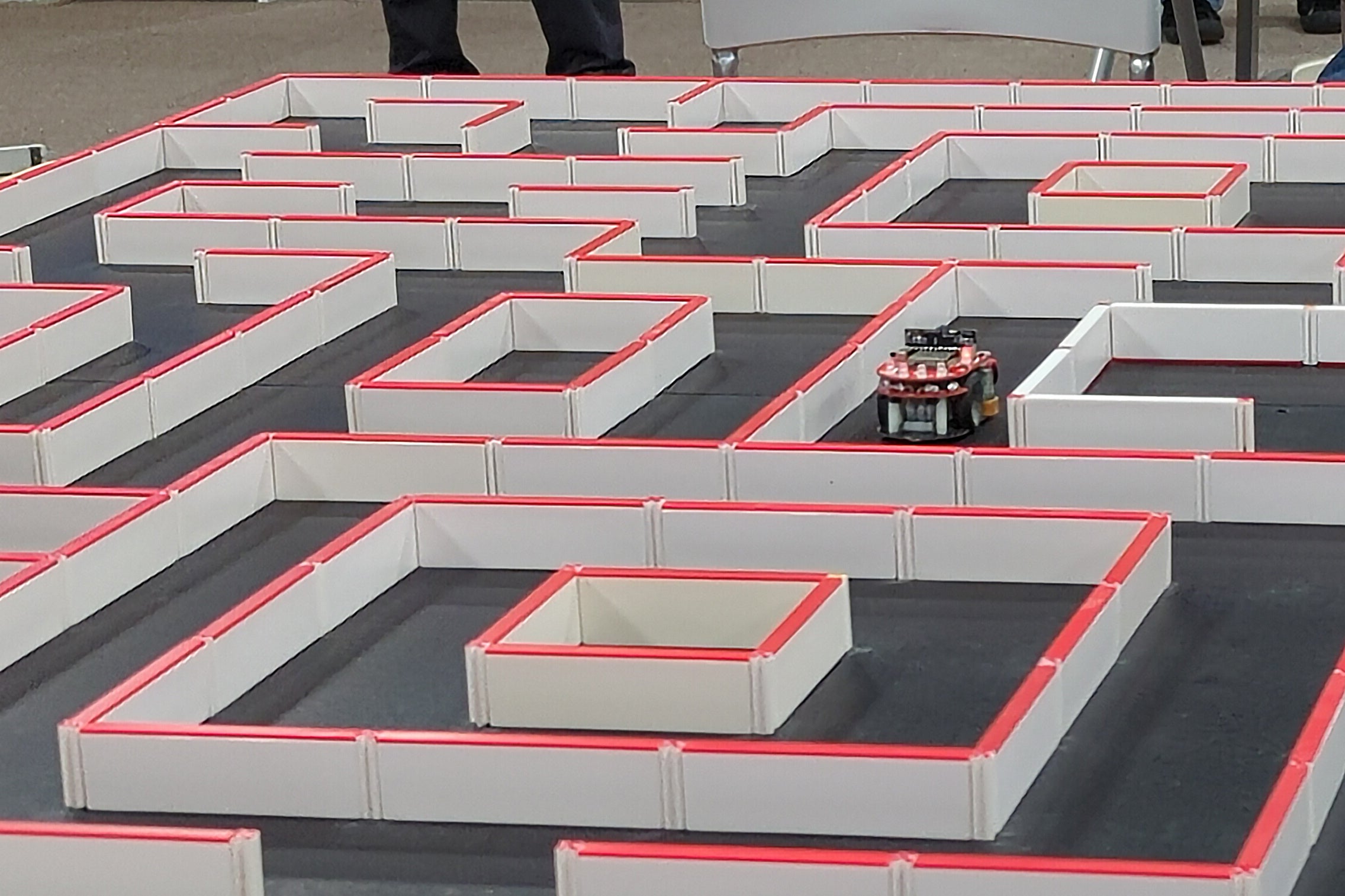 また、公益財団法人ニューテクノロジー振興財団(以下、NTF)の迷路解析ロボット競技会であるマイクロマウス競技のサイズに合致しており、大会出場も可能です。