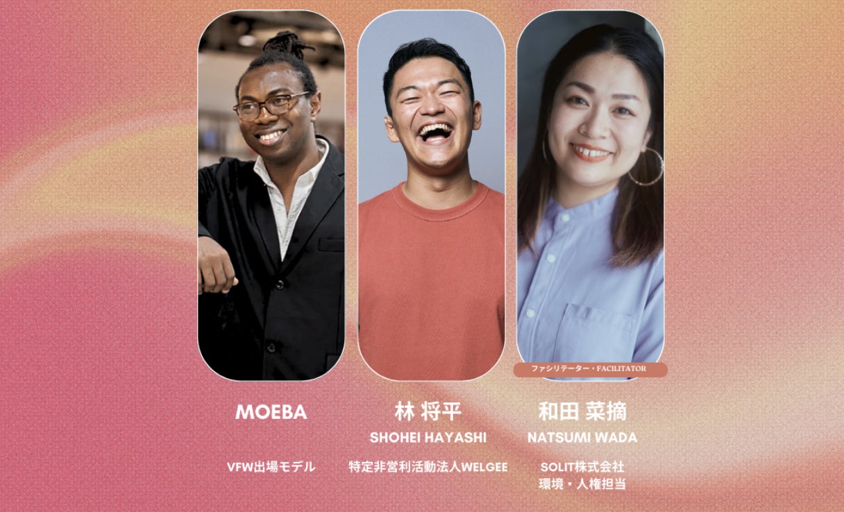 イベント期間中は、DE&Iに興味がある方々を対象に、SOLIT代表の田中とVFW出演モデルたちの当事者視点でのトークセッションや、「コミュニティ」「プロダクトデザイン」「経営」「ファッション業界」「エンターテイメント業界」「難民モデル」など多様なテーマでDE&I実践企業の方々をお招きして、「これからのダイバーシティカルチャーをどう作っていくか?」を語り合います。