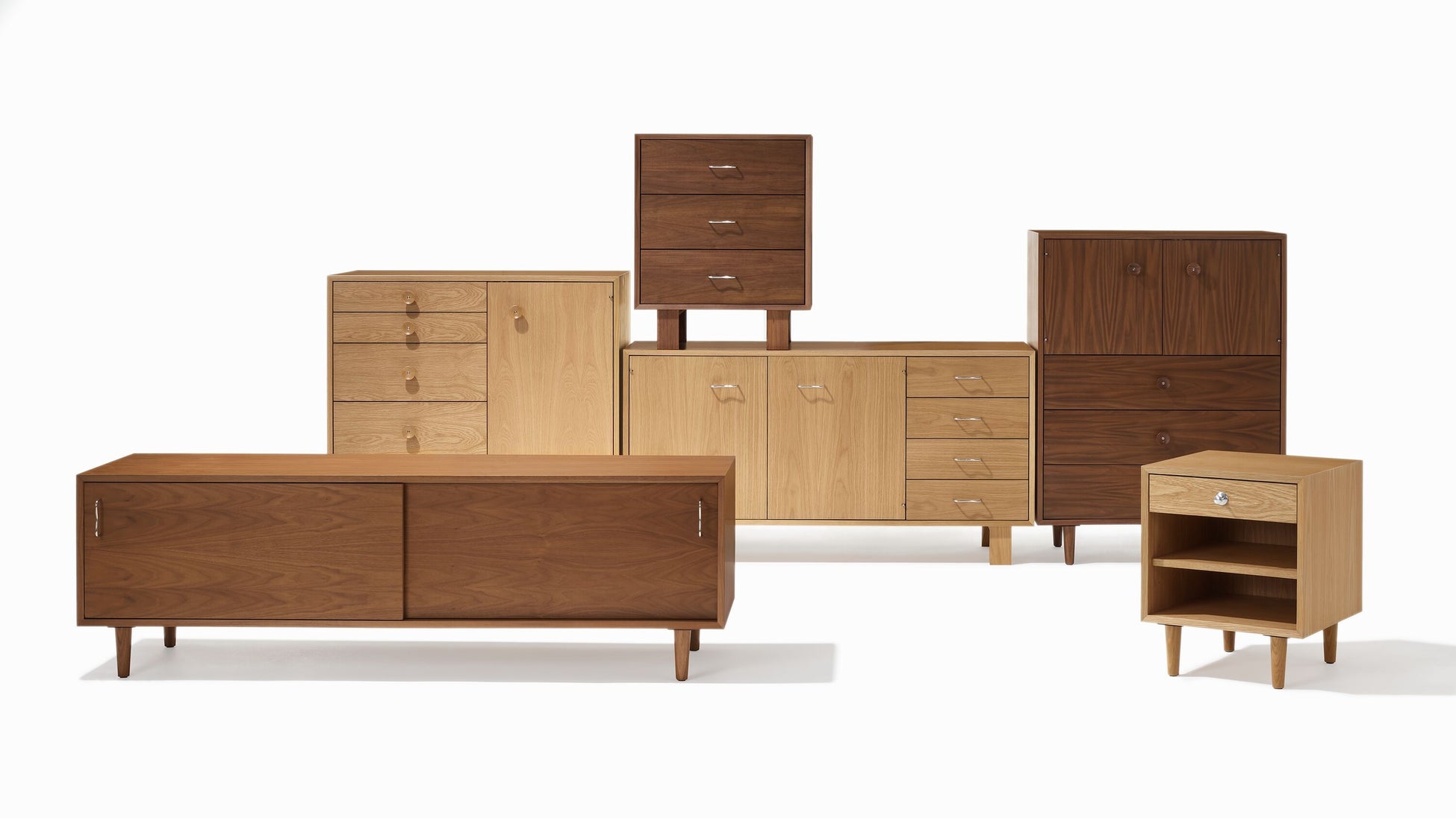 <後列>左:5Drawer With Door、中央上:3Drawer、中央下:Credenza、右:Console