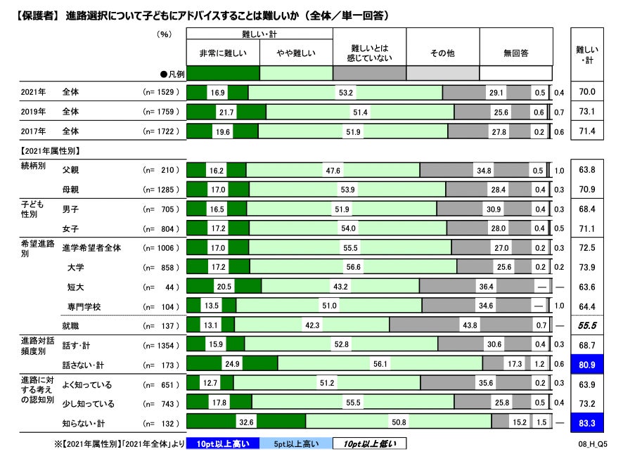 「高校生と保護者の進路に関する意識調査2021」(株式会社リクルート・一般社団法人全国高等学校PTA連合会調べ)によると、高校生の保護者のうちおよそ70%が「進路のアドバイスが難しい」と感じています。