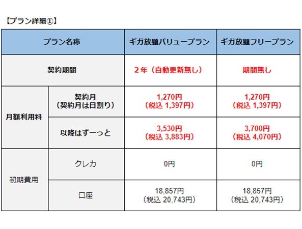 ・契約期間無し、契約解除料無しの新プラン