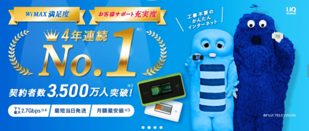 ・4年連続 WiMAX 顧客満足度 No.1・お客様サポート充実度 No.1
