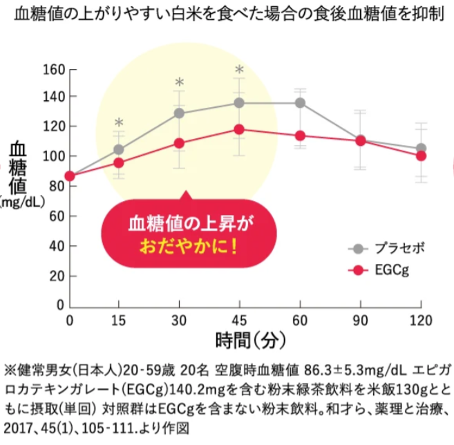 2.食後の血糖値の上昇を穏やかにする!エピガロカテキンガレート(EGCg)配合