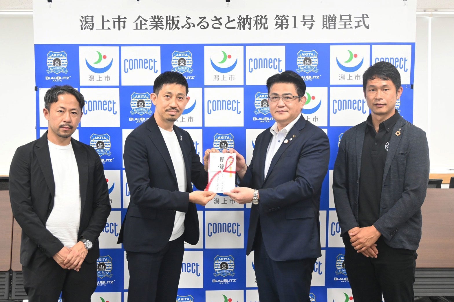 潟上市 企業版ふるさと納税寄附金第1号(J2ブラウブリッツ秋田練習拠点整備の支援)それに伴う、贈呈式のご報告