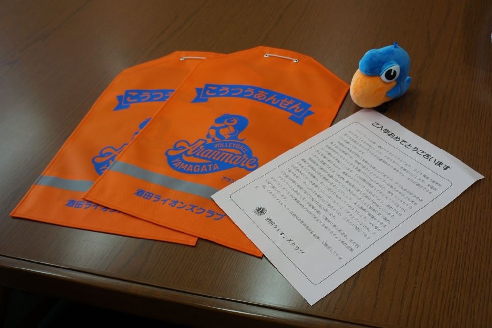 プレステージ・インターナショナル 女子バレーボールチーム(所在地:山形県酒田市、以下「アランマーレ山形」)は、昨年に引き続き酒田ライオンズクラブのご協力のもと、4月から酒田市内の小学校に通う新小学1年生のためのランドセルカバーを作成し、3月27日(水)、酒田市役所において贈呈式を執り行いましたことをご報告いたします。