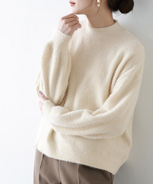 シャギーハイネックバルーン袖ニット(lo2103-013023)