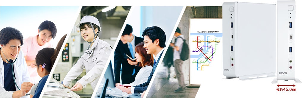 『Endeavor ST210E』の魅力はウルトラコンパクトな筐体サイズです。幅約45.0mmで設置スペースが節約できるだけでなく、通風孔が側面にないため壁やファイルなどの隣に隙間なく設置したり、製造業の現場で装置の中に組み込んで使用したり、サイネージ表示のため狭い場所に設置することも可能です。