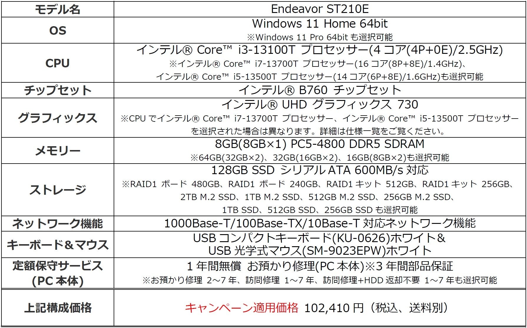 『Endeavor ST210E』は第13世代インテル® Core™ プロセッサーを標準搭載しています。消費電力を抑えながら高い処理性能を発揮でき、業務の効率化を実現します。メモリーはDDR5を採用し、最大64GBまで搭載可能。ビジネスの現場でのメモリー不足を解消します。