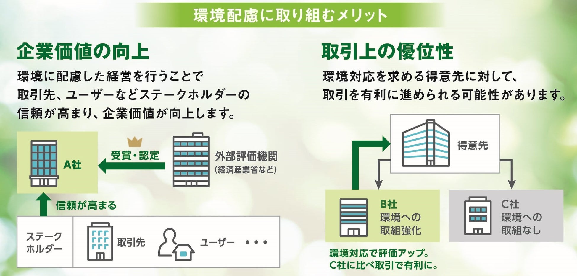 環境保全への貢献はもちろんのこと、環境対応を進めることは、企業価値の向上にもつながります。リサイクル素材の積極的な活用は資源の節約と廃棄物削減につながり、循環型社会の実現を促進します。このような地球環境への配慮は、環境意識の高い取引先からの信頼を獲得し、取引を有利に進める上で重要な要素となります。さらに、企業価値向上を通じて、従業員、株主、地域社会といったステークホルダーからの評価を高め、持続可能な企業としての成長を後押しします。