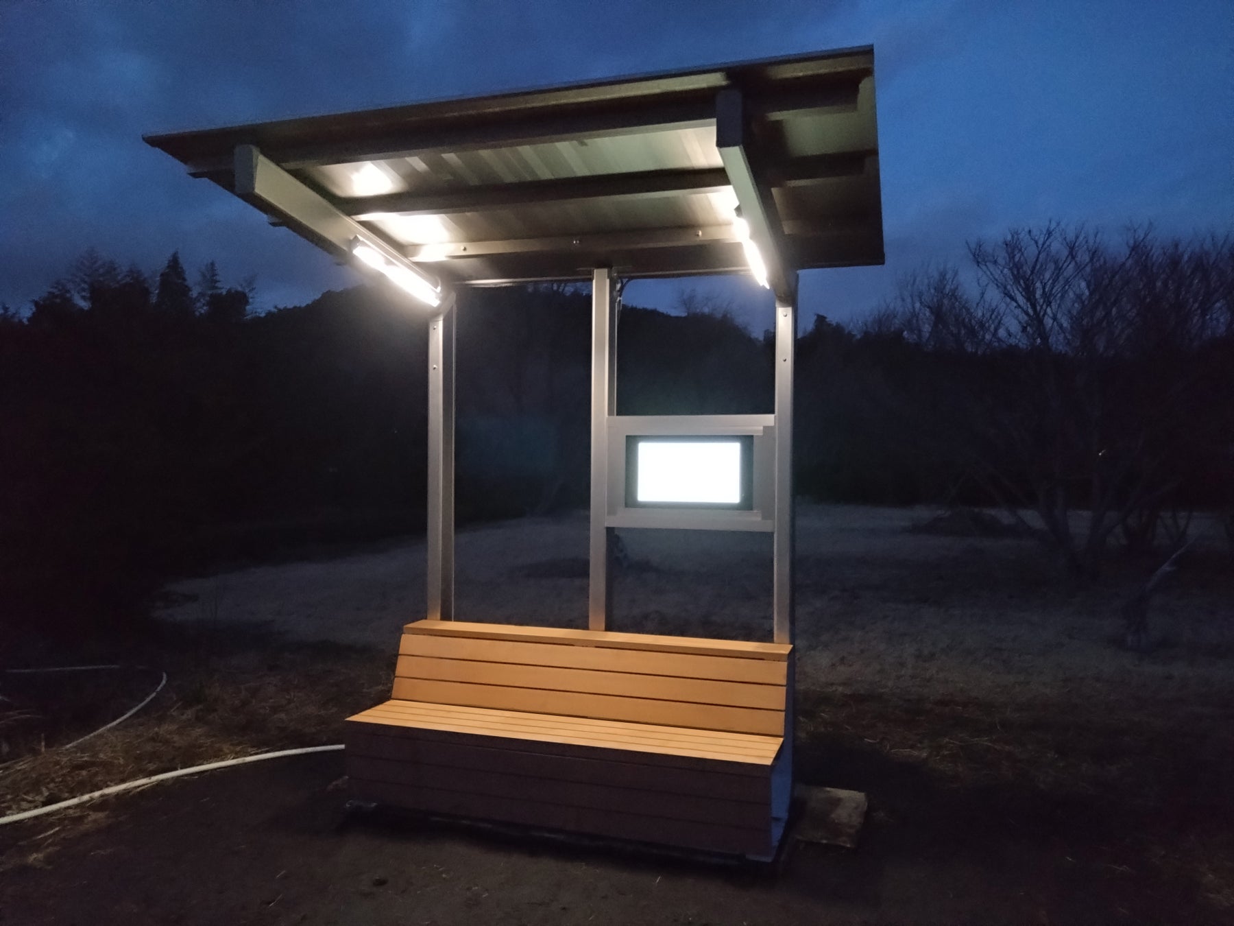 ベンチの構造は、2021年10⽉に販売を開始した屋外家具「Fandaline(ファンダライン)」で適⽤したものをベースに、今回のスマートベンチ向けに改良しました。ベンチの下部に蓄電池を収納する筐体を納めるためのスペースを確保し、⽀持脚は屋根を⽀える柱に固定できる構造に改良することで、スマートベンチで必要な部材・部品を合理的に納める設計となっております。