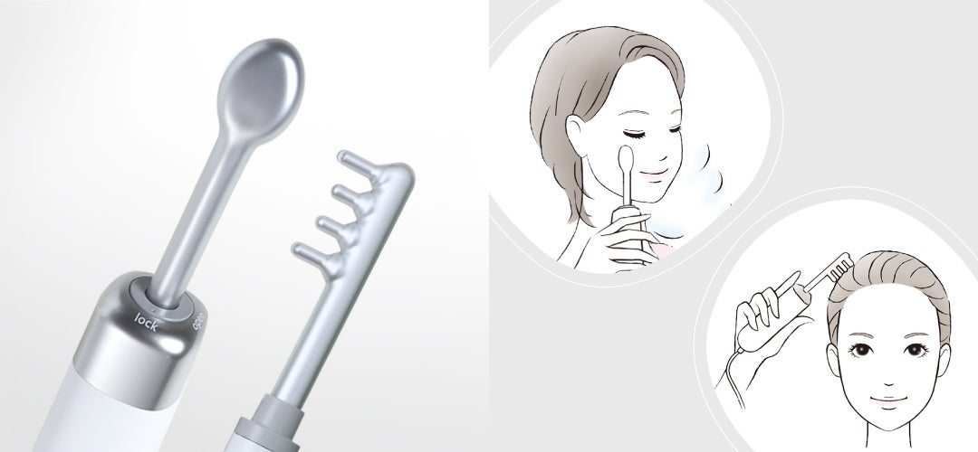肌をゆるめることに適した超音波振動と、角層の深くまで保湿成分を浸透*3させるイオン導入*4、さらに温感作用により、気になる部分をダイレクトにケアすることができます。