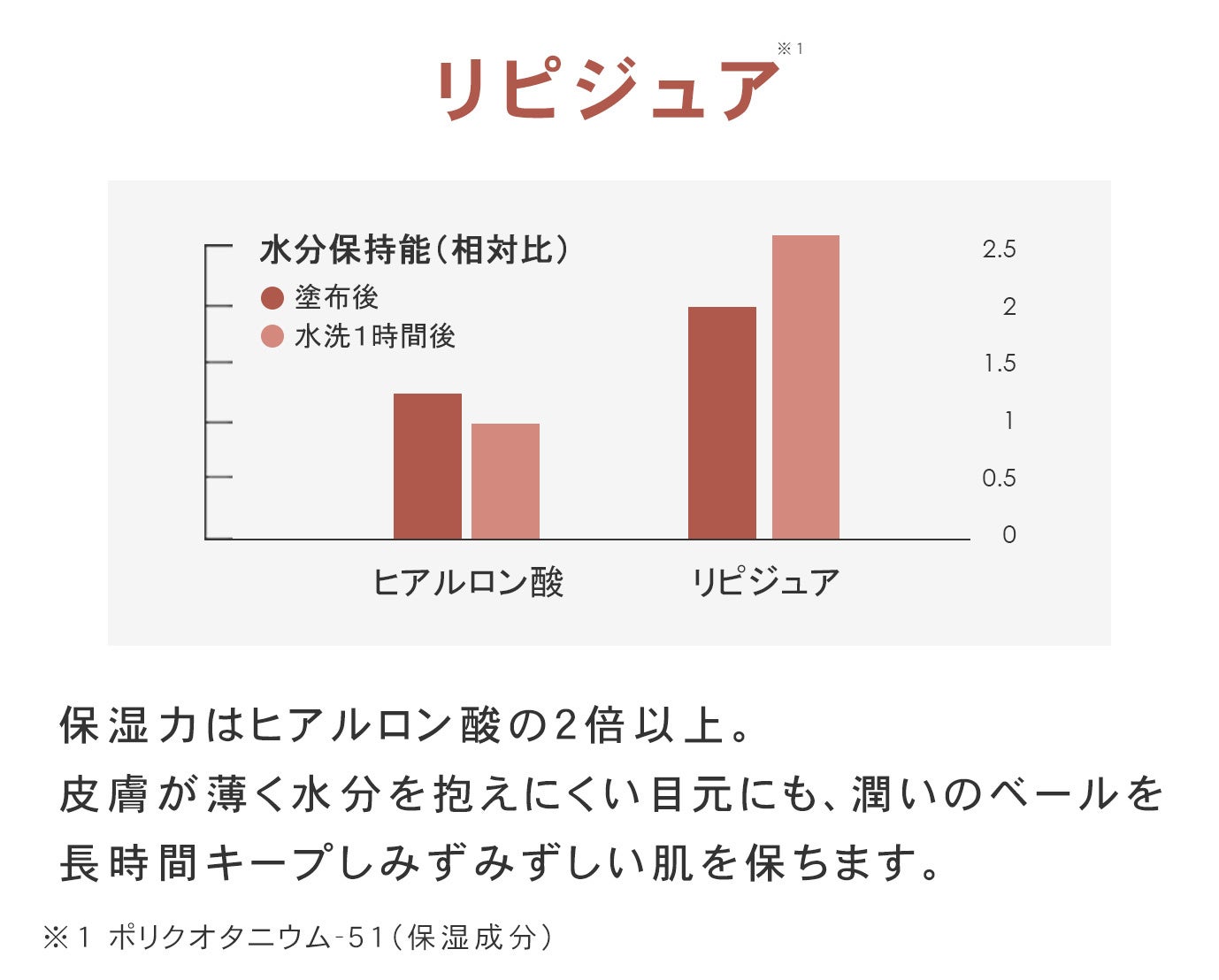 ▼ヒアルロン酸の2倍以上の保湿力[リピジュア*7]
