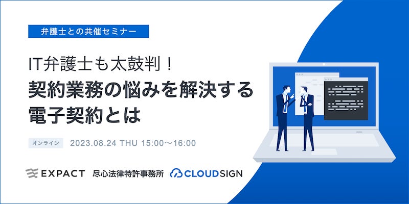 【8/24(木)エクスパクトオンラインセミナー開催のお知らせ】~IT弁護士も太鼓判!契約業務の悩みを解決する電子契約とは~