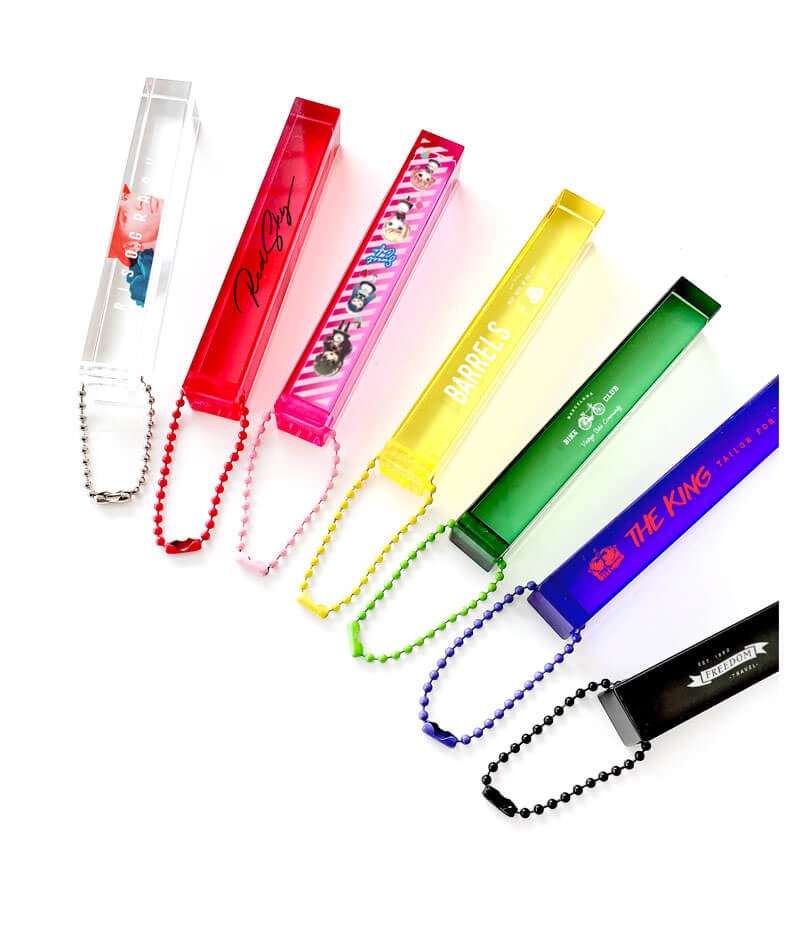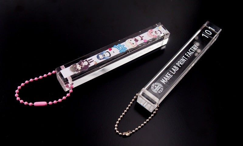 一般的なキーホルダーではなく、昔(昭和)のホテルのフロントで手渡されるような棒状のアクリルキーホルダー。こちらではそのような昭和レトロ感あふれるホテル風アクリルキーホルダーをご紹介。