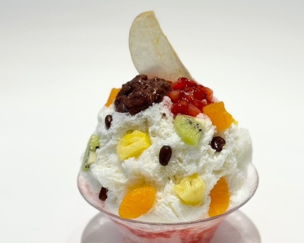 苺をふんだんに使用し、あんことミルクソースを組み合わせました。季節のフルーツトッピングでトロピカルなかき氷をお楽しみください。