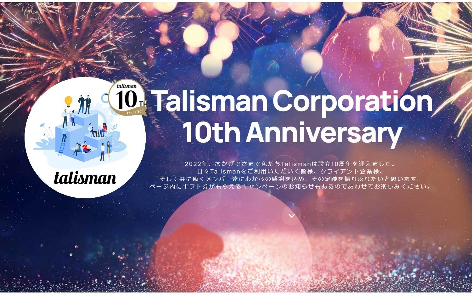 総合人材サービスのタリスマン株式会社が設立10周年 ~特設サイトオープン&キャンペーンを開始~