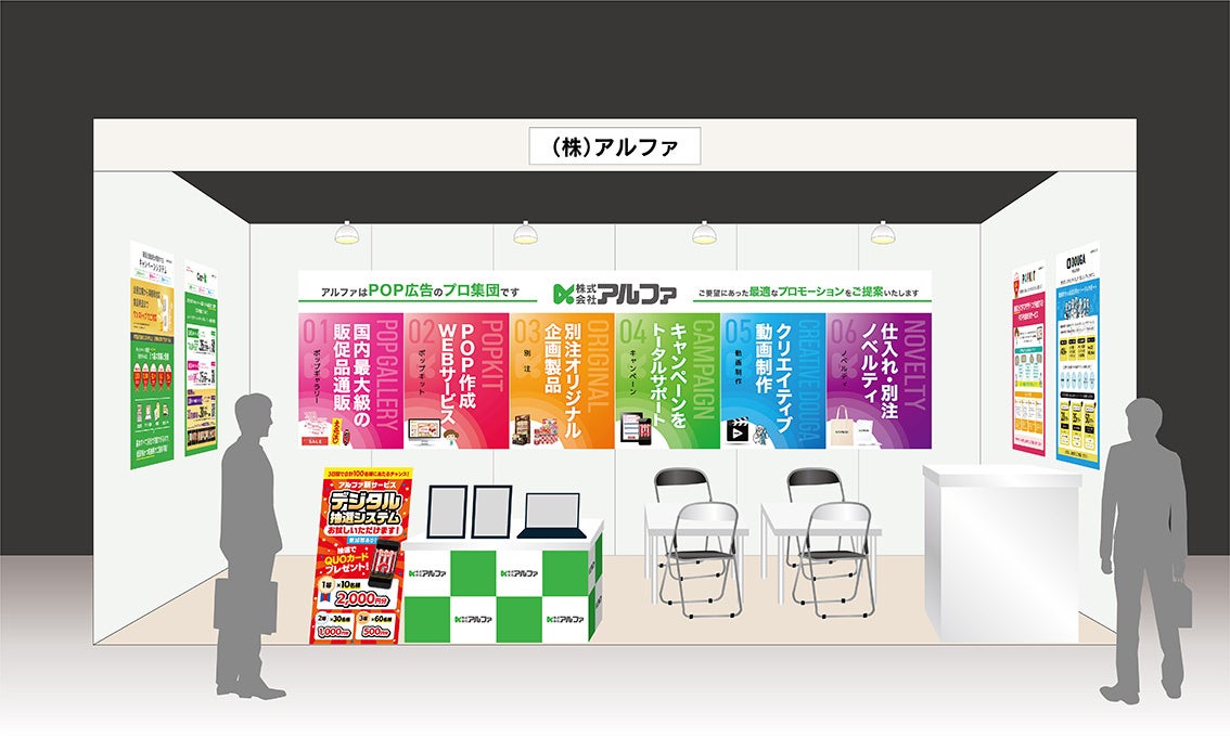 その他、流通小売業の店頭で展開できる有効な販促アイテムを掲載した販促総合カタログ「POPGALLERY」や、別注製作の販促ツール・ノベルティ各種など複数のサービスを展開し、皆様のご来場をお待ちしております。ぜひ幕張メッセまでお越しください。