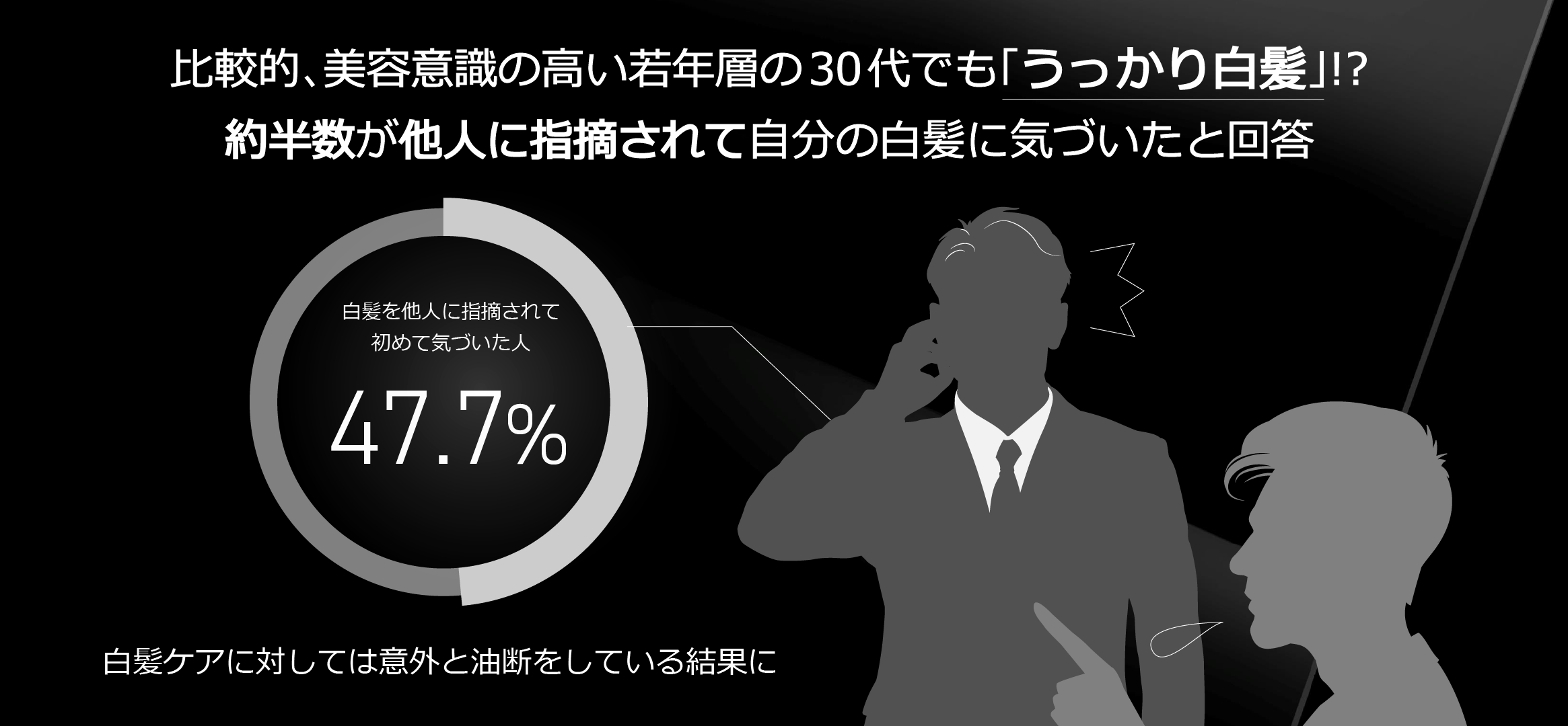 - 女性に比べ男性の『うっかり白髪*』経験率は約3.7倍!*他人に指摘されて初めて気づく白髪のこと