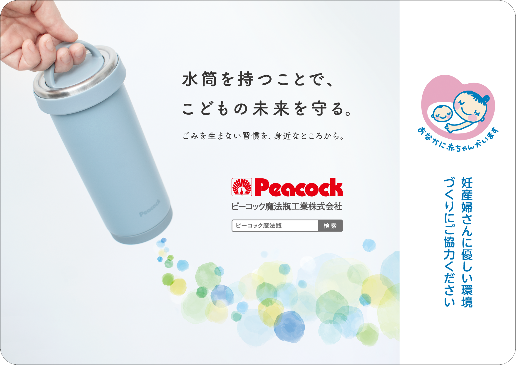 マイボトル運動でこどもの未来を守る ピーコック魔法瓶がマタニティマークとのタイアップ広告を掲出