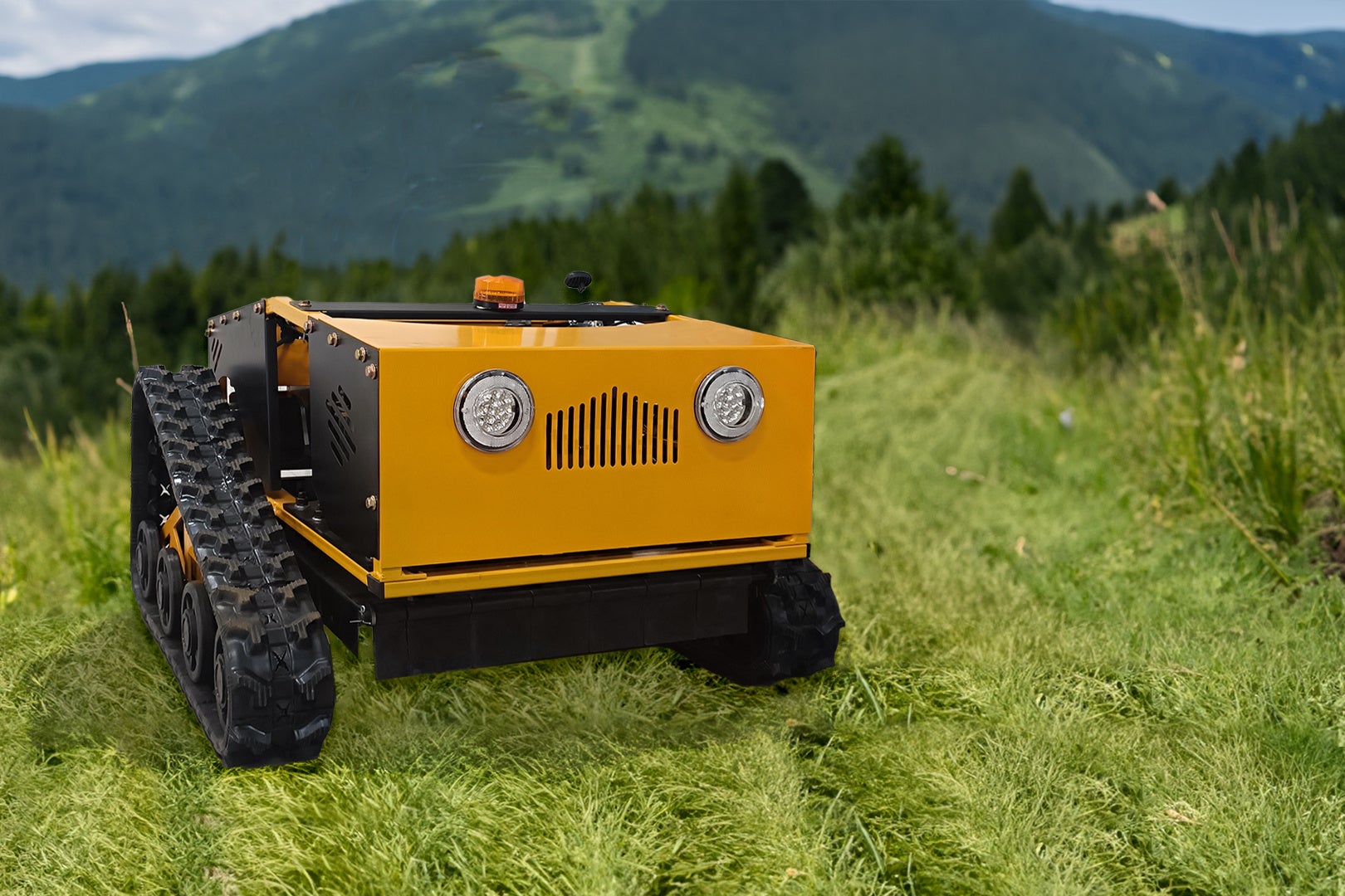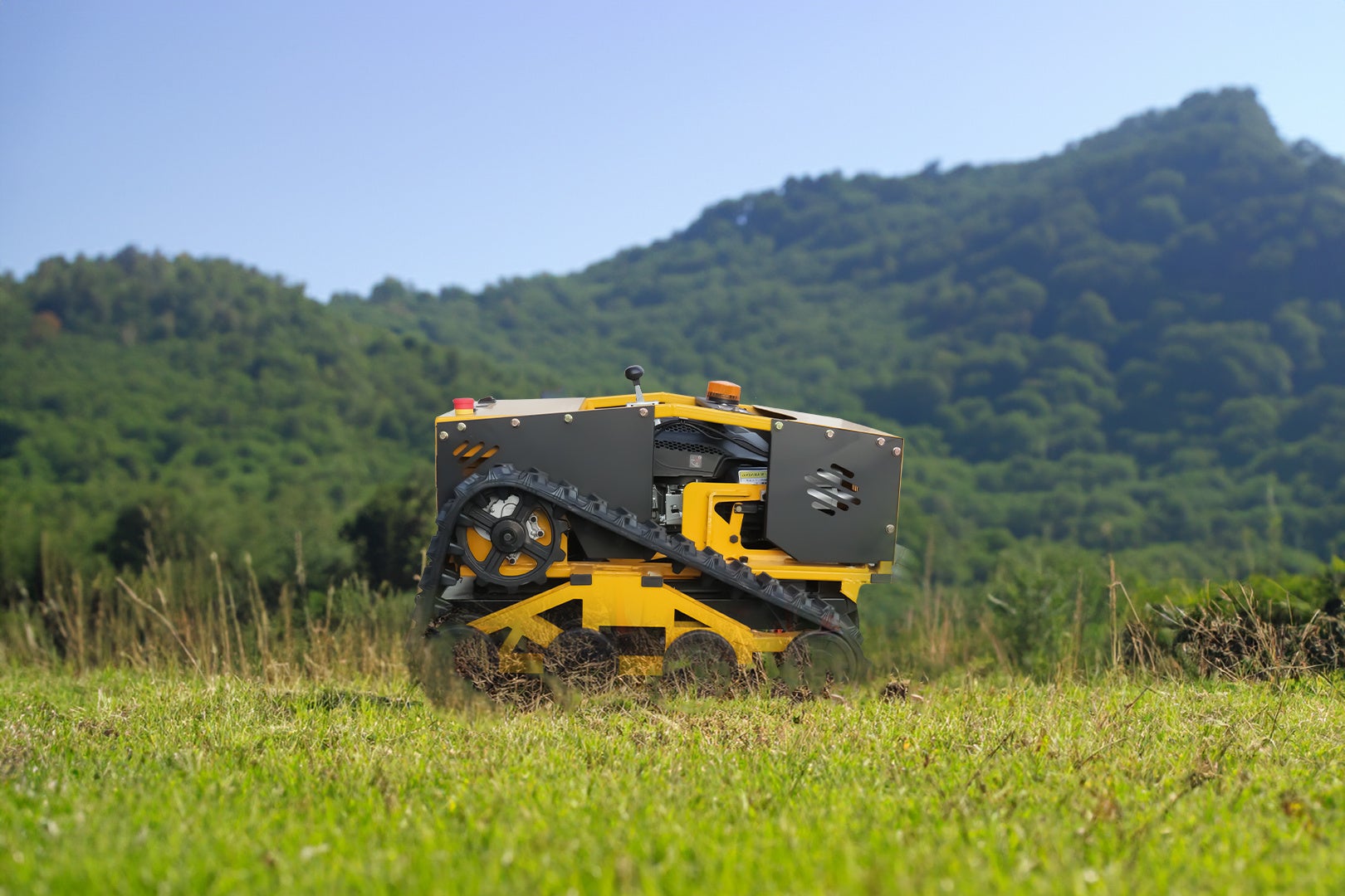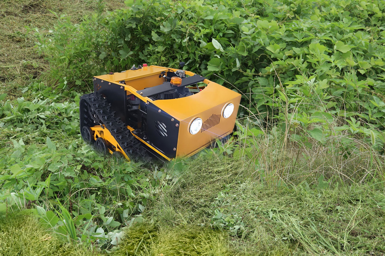 広大な敷地や傾斜地の多い圃場に適している800mmの刈幅に加え、16馬力エンジン&ブラシレスモーターを搭載したシリーズ最上位機種となります。20輪のキャタピラープーリーを備え、グリップ力も強いため、急斜面や密集地などの負荷の高い作業にも向いています。