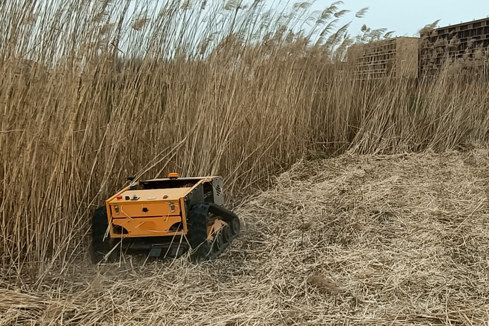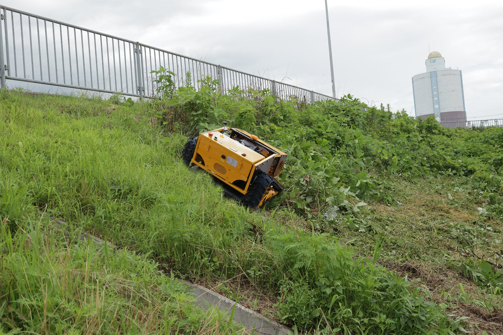 小回りの利く4輪タイプ&コンパクトサイズなので、ソーラーパネル架台下や果樹園などの人の作業し難い場所に適しております。時速6kmのハイスピード走行可能なので、河川敷などの細長い圃場にも活躍いたします。