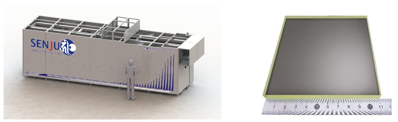 阪大レーザー研で開発中の大型高出力レーザー装置「SENJU」はビーム径約Φ90mmと大径であることが特長です。そのビームを制御するためのキーパーツとして、大型化が可能なガラス製ファラデー素子が有望視されています。
