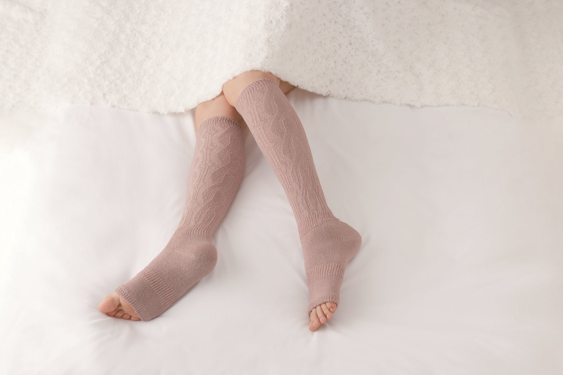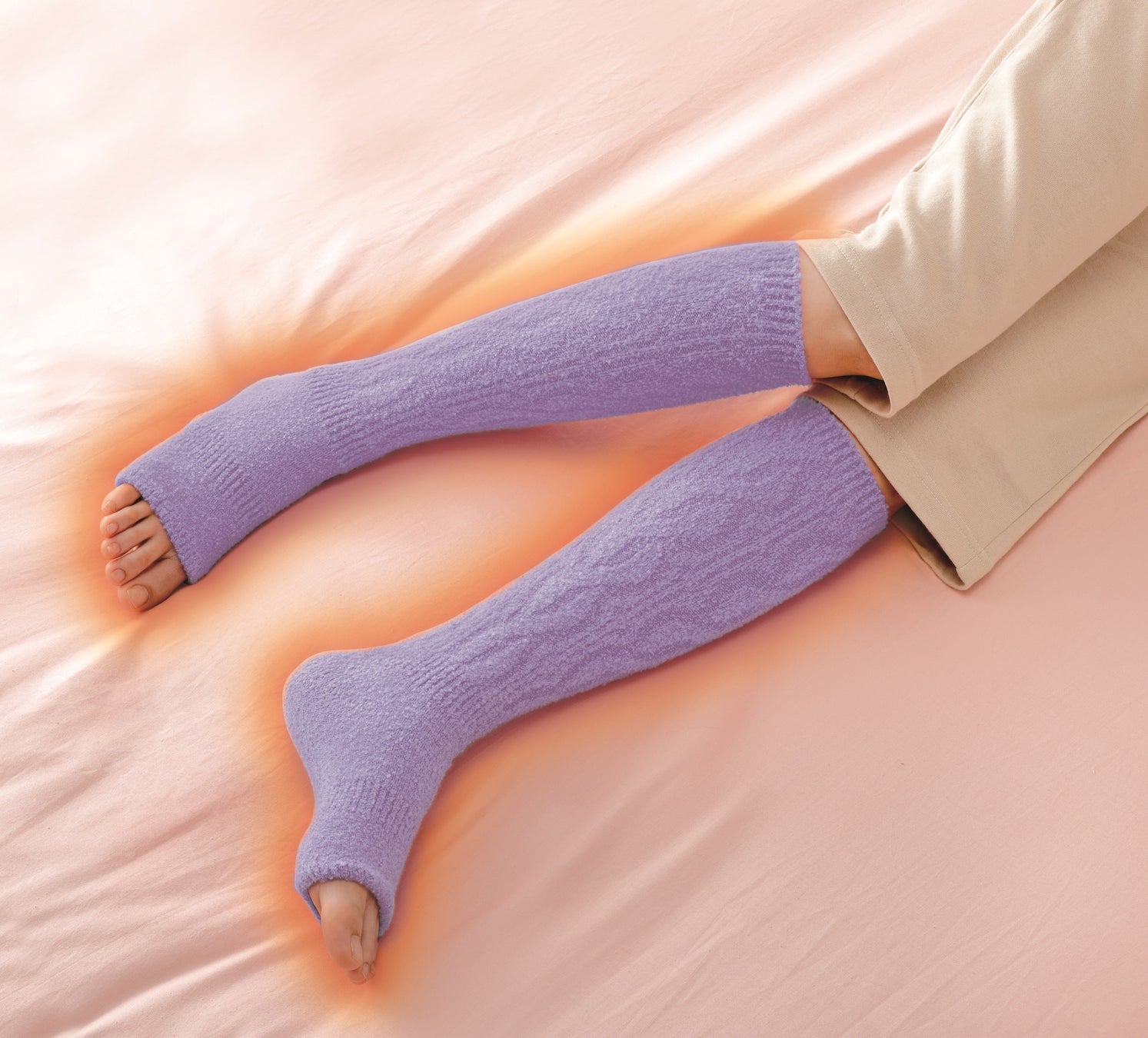 パイル糸と保湿繊維を掛け合わせて、履き心地にこだわった弊社の売れ筋商品「夜用快眠ウォーマー」は、暖かさと肌当たりの良さが特徴のレッグウォーマーです。