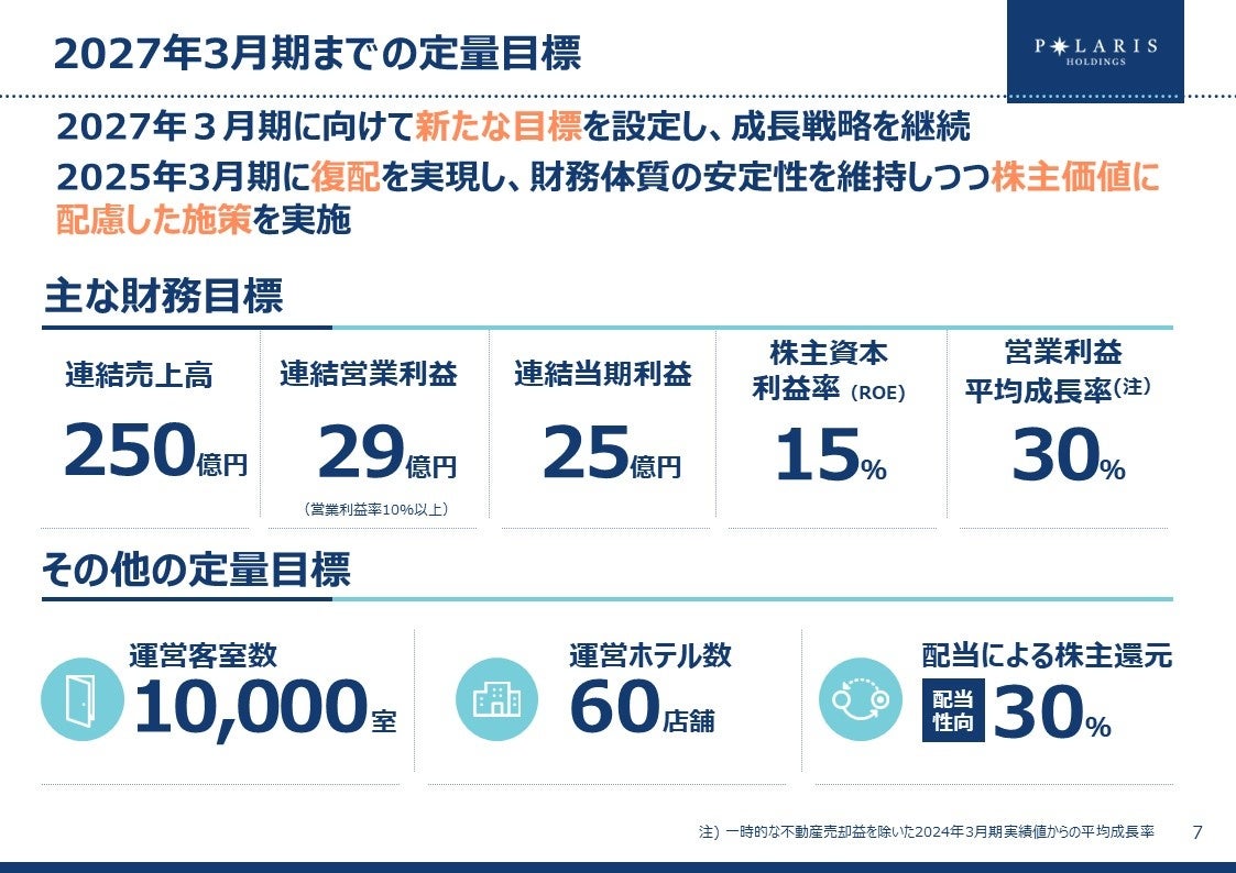 2027年3月期までの定量目標