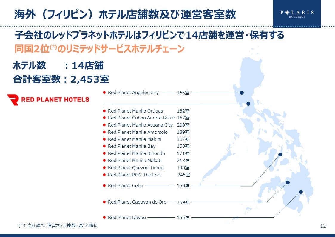 海外(フィリピン)ホテル店舗数及び運営客室数