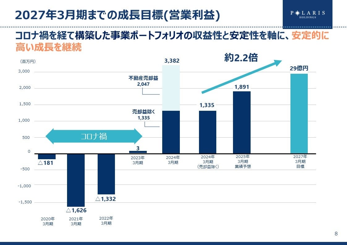 2027年3月期までの成長目標(営業利益)