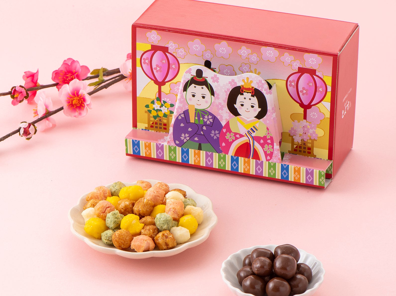 年に一度のひなまつりを、組み立てて雛かざりになるパッケージでかわいらしく彩ります。