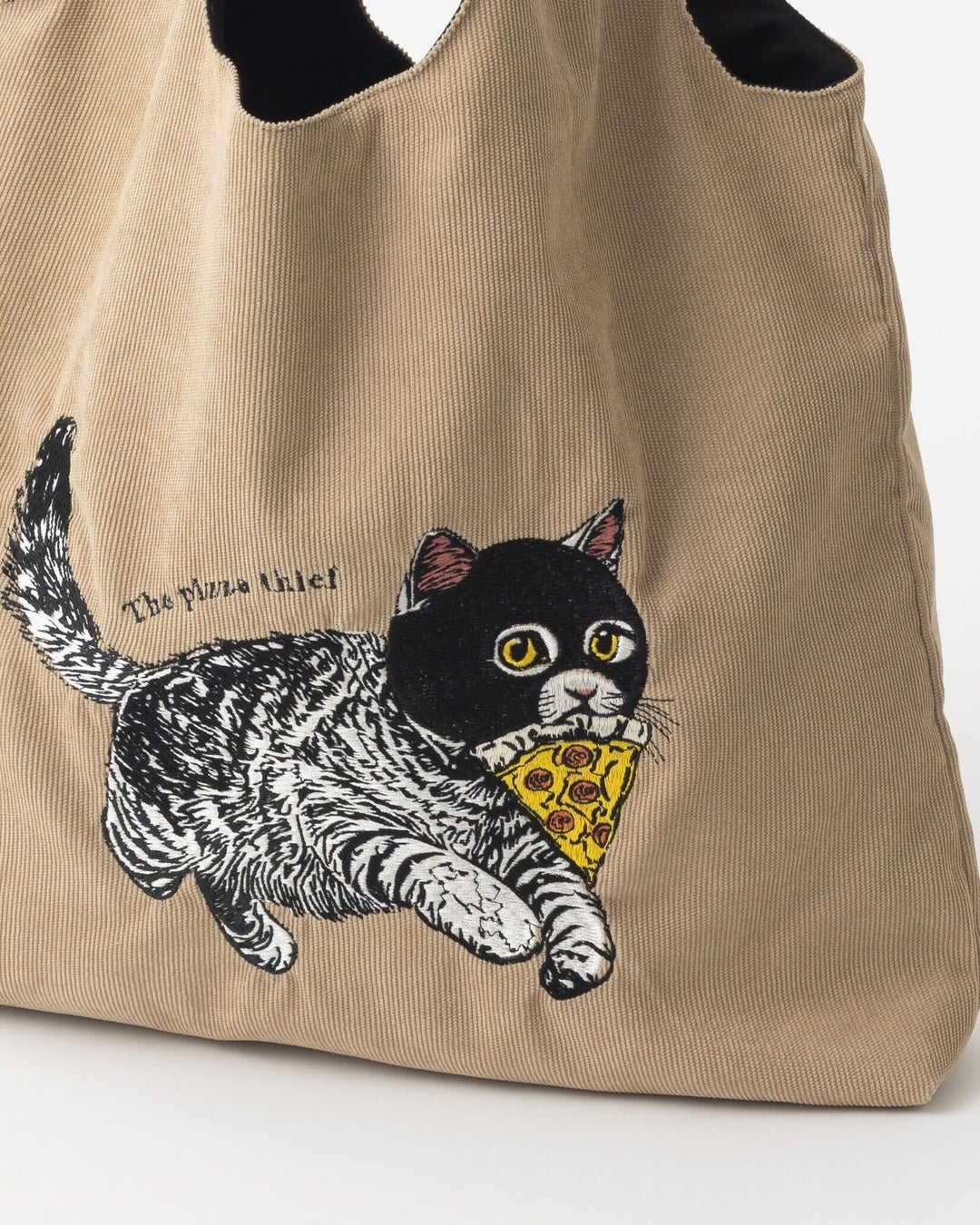 猫犬デザイン刺繍 コーデュロイ トートバッグ 60×40cm (左からブラック、ネイビー、アイボリー、ベージュ)