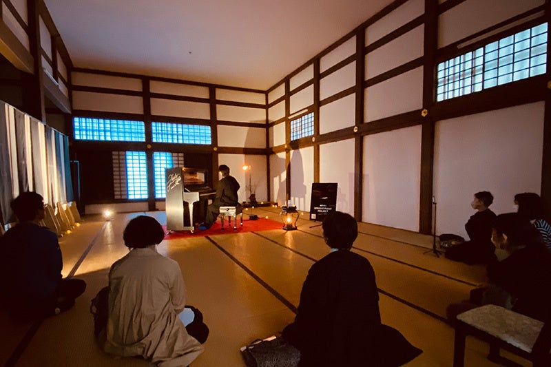 ジャズフェスティバル、商業施設のクリスマスイベント、小学生向けのワークショップ、寺院での瞑想的な演奏体験、さらには仏像展でのお経との即興コラボレーションまで、開催スタイルは多岐にわたった。
